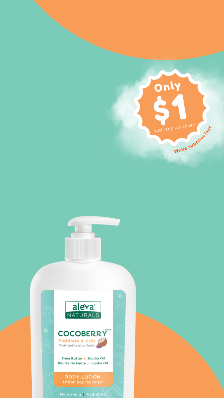 Add a Cocoberry Lotion to your cart with any Aleva purchase and the discount applies automatically at checkout. Valid in Canada only.