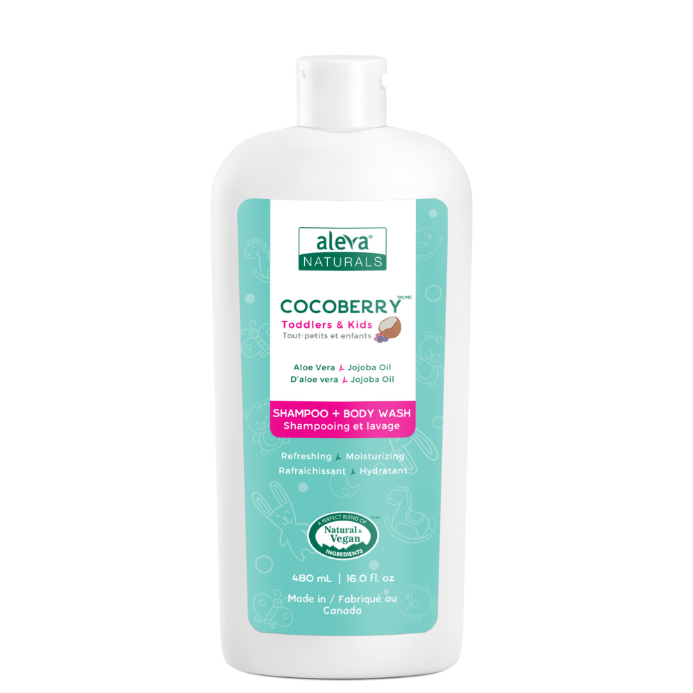 Take care of your kid's delicate hair with Aleva Naturals COCOBERRY Shampoo + Body Wash. Specially formulated with a blend of Jojoba and Aloe Vera to naturally soothe, hydrate and clean sensitive skin. This unique two-in-one formula gently cleanses and deeply moisturizes delicate hair and skin. It's infused with our unique COCOBERRY™ scent, making bath time more fun! This shampoo + body wash is hypoallergenic, free of parabens, phthalates, sulfates, and dyes. Like all Aleva Naturals products, the COCOBERRY Shampoo + Body wash is made with premium quality ingredients, so you can enjoy a safe product without harsh chemicals or additives.