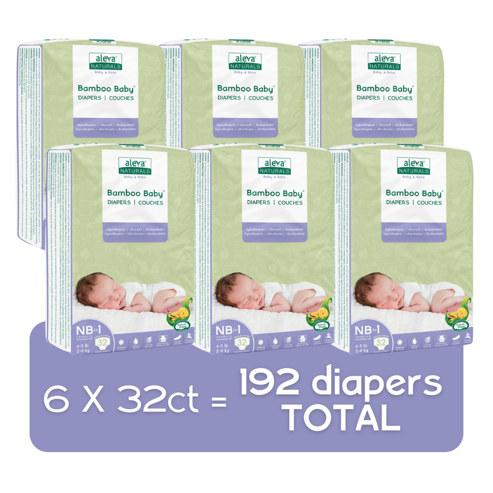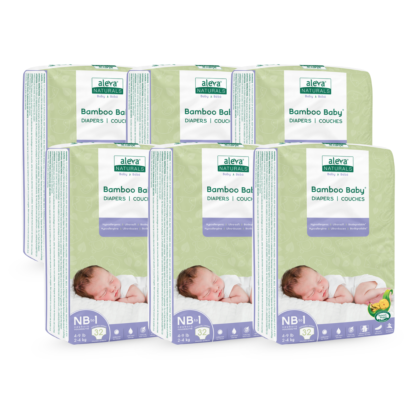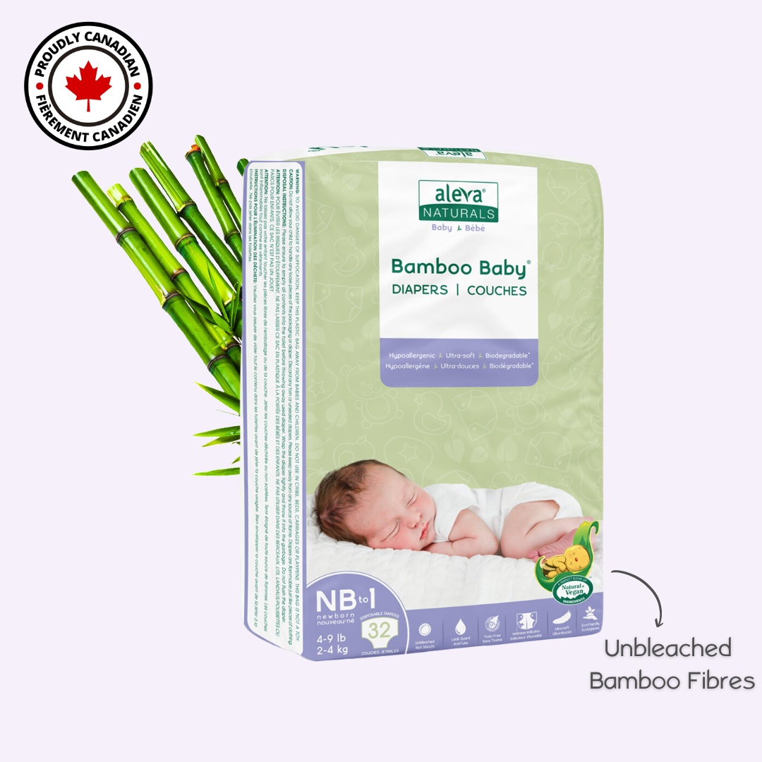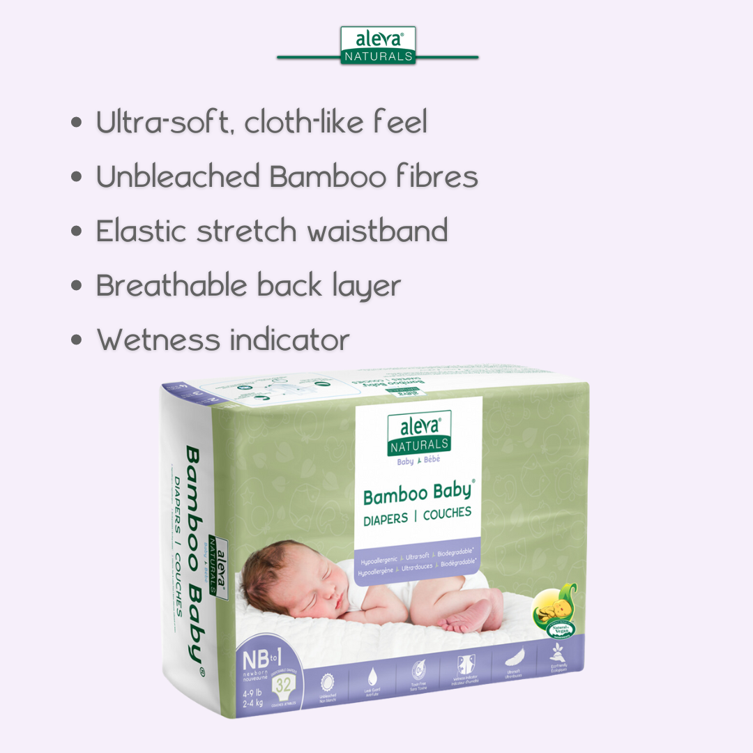 Keep your baby's bottom clean & comfortable with the Aleva Naturals Bamboo Baby Diapers. Our diapers top and bottom layers are made from bamboo fibres called Bamboo Kun. Together with the extra absorbability and breathable back layers, these diapers will help keep your baby’s bottom soft, supple and silky smooth. Plus, our diapers have a 3-line wetness indicator that changes from yellow to green, to let you know when it is time for a change & flexible side panels and pocketed back waistband ensure a snug and comfy fit. The Bamboo Baby diapers are feathery soft, durable, and biodegradable. Designed to provide maximum comfort for your baby, these eco-friendly diapers will be your new go-to. Like all Aleva Naturals products, the Bamboo Baby Diapers are made with premium quality ingredients, so you can enjoy a safe product without harsh chemicals or additives.