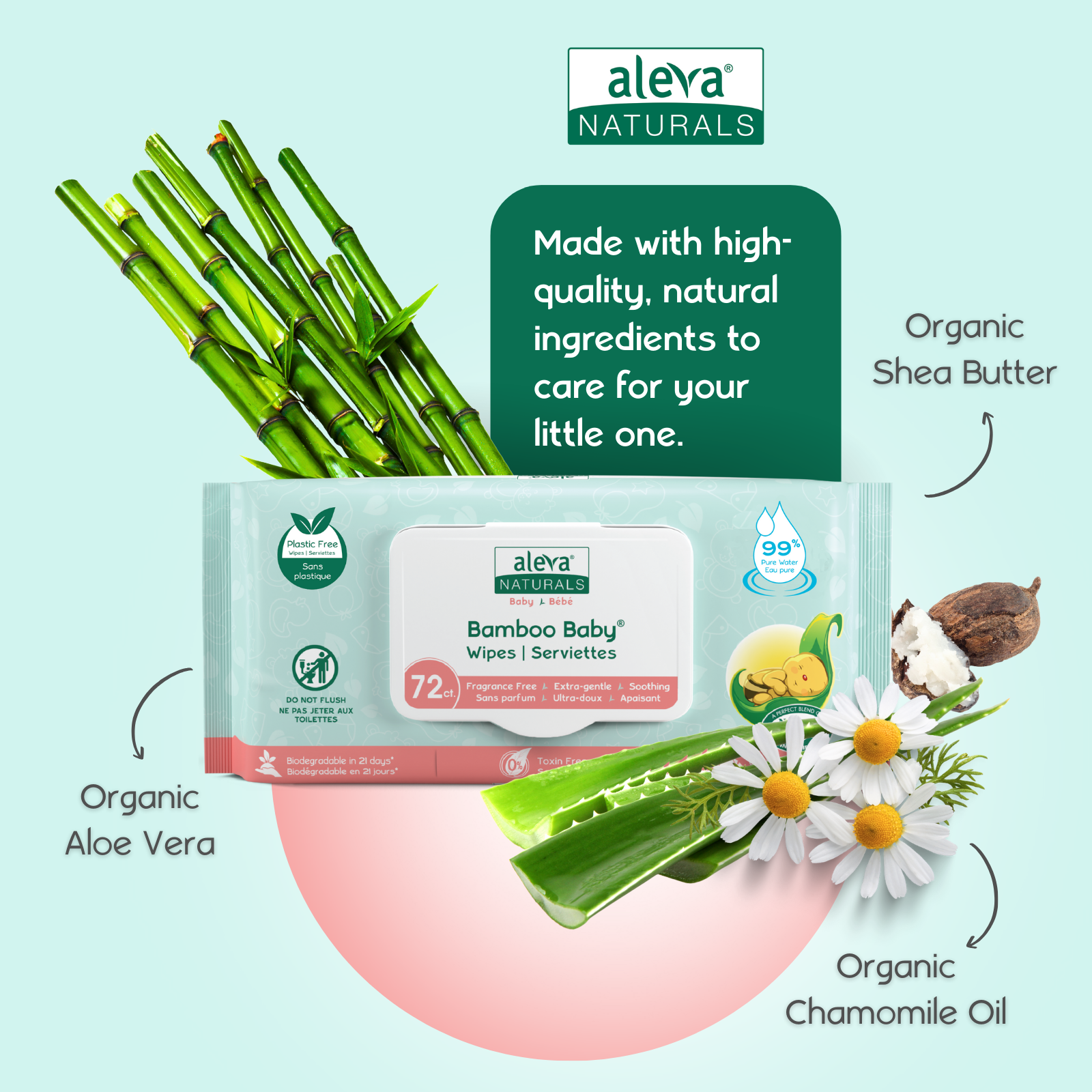 Cleanse your baby's delicate skin with the Aleva Naturals Bamboo Baby Sensitive Wipes. Enriched with a combination of Organic Shea Butter, Organic Olive Oil, Aloe Vera, and Chamomile Oil that gently cleanses, soothes, and leaves your baby's skin feeling silky smooth. Formulated for newborns, babies & toddlers.