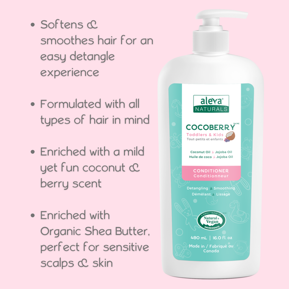 Both are infused with our unique COCOBERRY™ scent, making bath time more fun! They are hypoallergenic, free of parabens, phthalates, sulfates, and dyes. Like all Aleva Naturals products, the COCOBERRY range is made with premium quality ingredients, so you can enjoy a safe product without harsh chemicals or additives. Formulated for toddlers & kids.