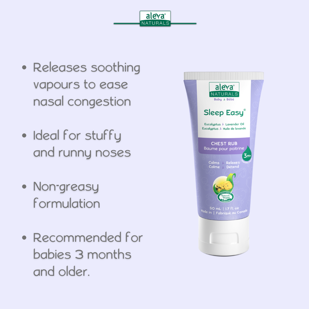 The Sleep Easy Chest Rub (50ml) is a soothing and luxurious moisturizing chest rub enriched with Eucalyptus and Lavender Oils. Made with a unique blend of Organic Shea Butter & Olive Oil to help soften and moisturize baby’s skin. Formulated for babies over 3 months.