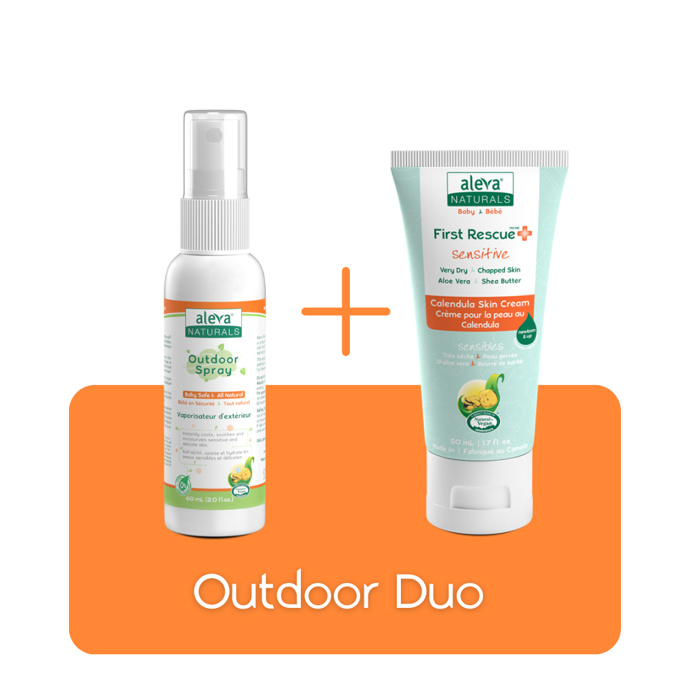 The Outdoor Duo is the perfect combination to nurture your little one's delicate skin. Bothย items included are hypoallergenic, free of parabens, phthalates, sulfates, and dyes. Like all Aleva Naturals products, they are made with premium quality ingredients, so you can enjoy a safe product without harsh chemicals or additives. Formulated for newborns & babies.