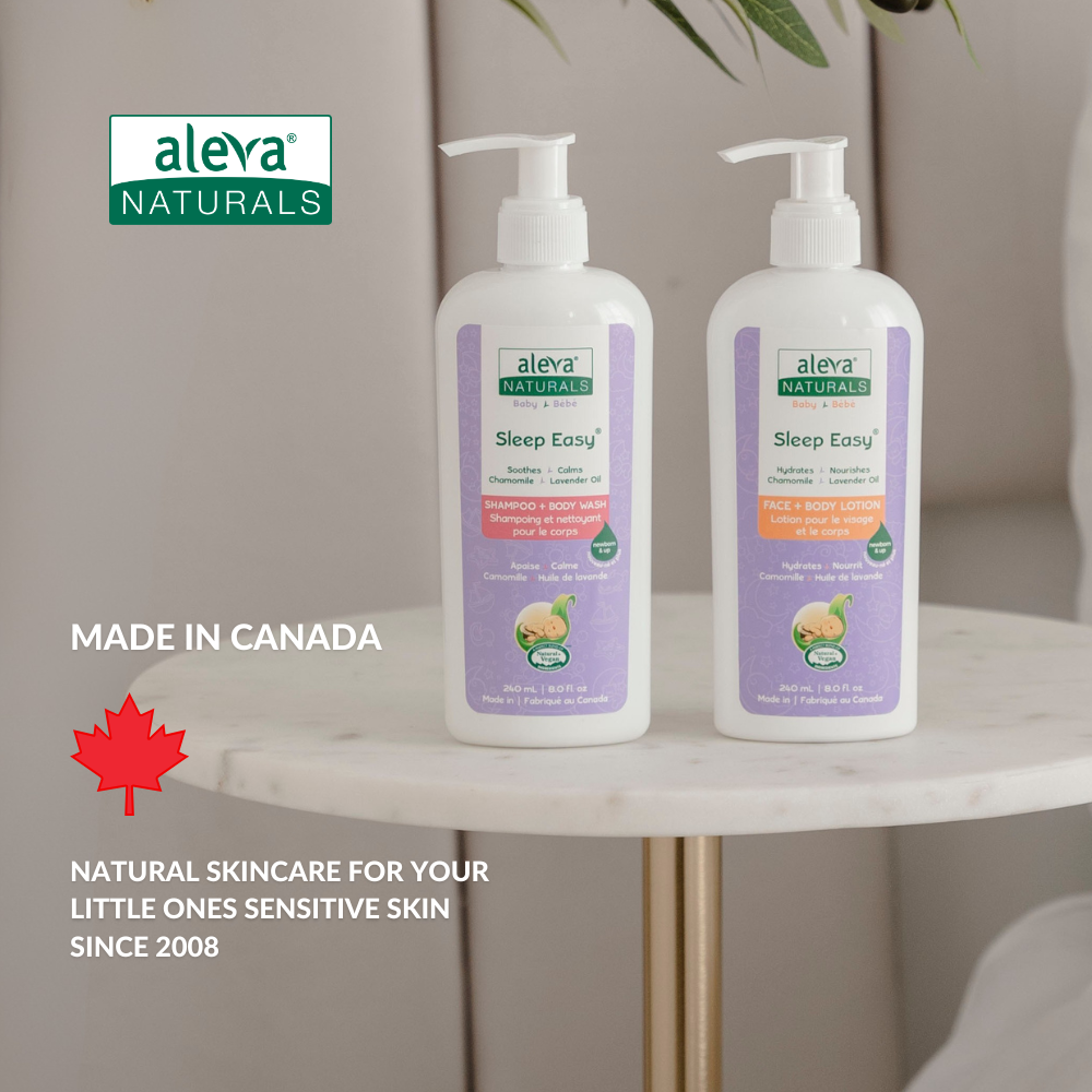 Help get your little one ready for bed with the Aleva Naturals Sleep Easy Shampoo & Body Wash. This rich lathering cleanser helps retain moisture and gently soothes your baby’s delicate skin and body, leaving skin feeling clean, soft, and supple. Enriched with a unique blend of soothing Lavender and Chamomile Oils that release aromas to soothe, calm and relax baby to a restful sleep, this wash is the perfect product to help you pamper your baby before bedtime. This baby shampoo & wash is hypoallergenic, free of parabens, phthalates, sulfates, and dyes. Like all Aleva Naturals products, the Sleep Easy Shampoo & Body Wash is made with premium quality ingredients, so you can enjoy a safe product without harsh chemicals or additives. Formulated for newborns & babies.