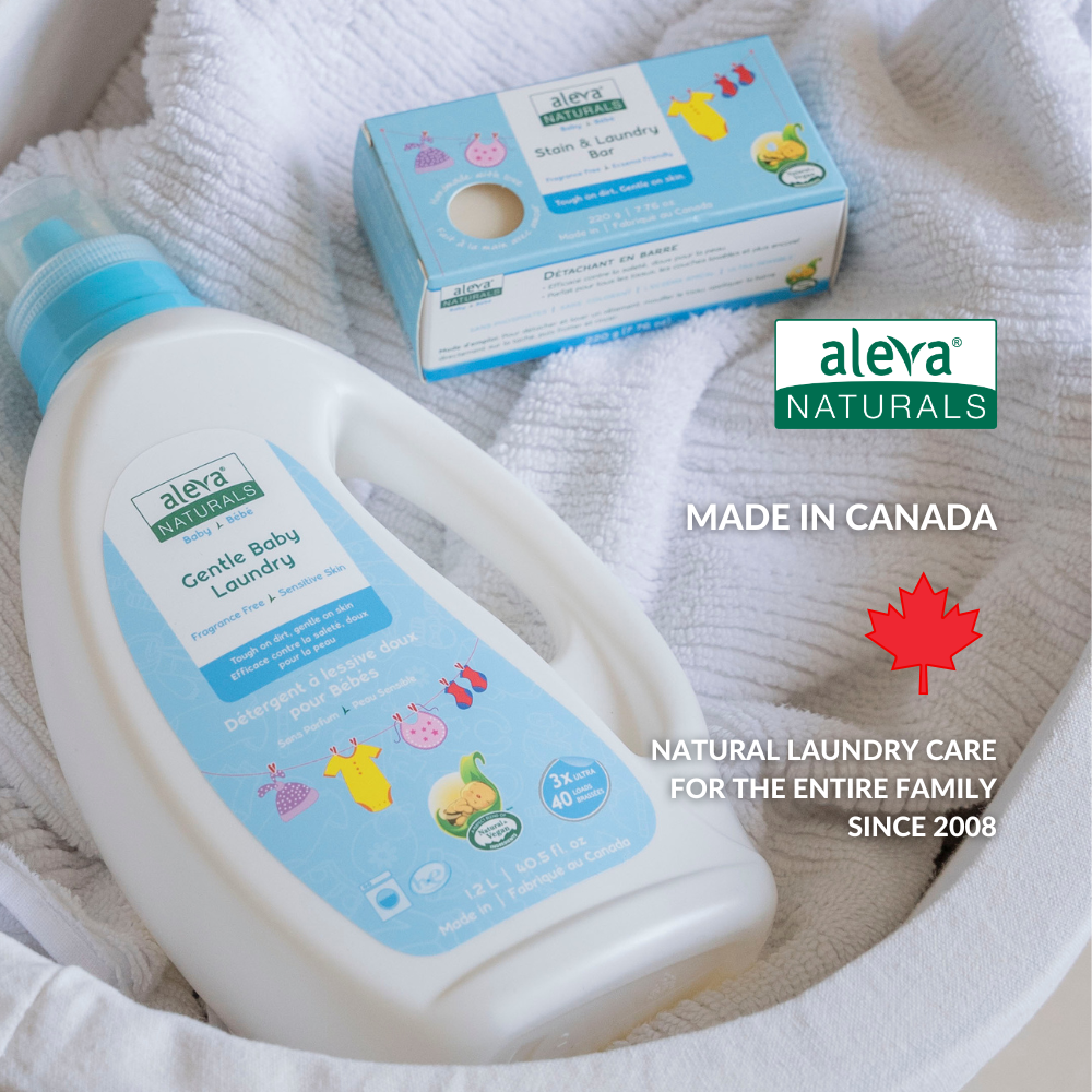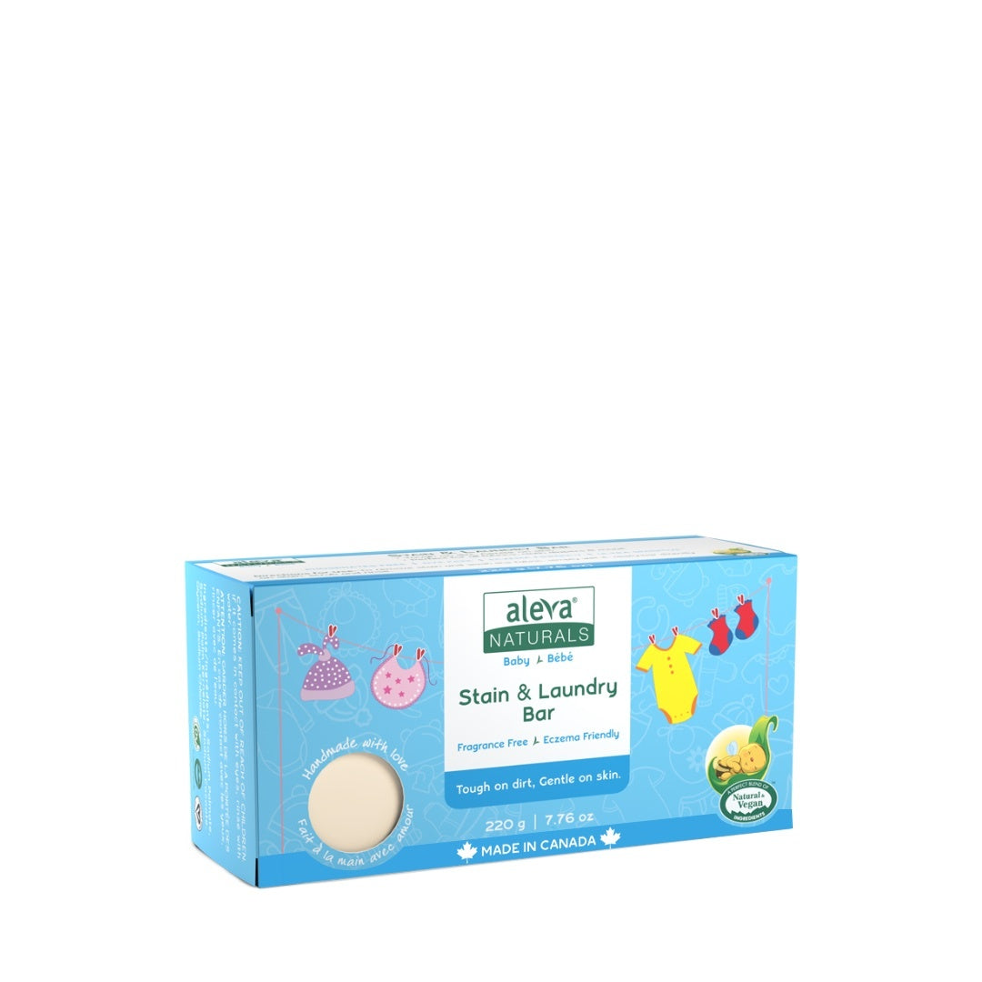 Gently wash baby's clothes with the Aleva Naturals Stain & Laundry Bar. Enriched with a unique blend of emulsifiers and cleansers derived from coconut oil, this stain bar helps target and effectively remove stubborn stains from clothing and fabrics. The manual spot cleaning action of this stain remover, actually gets the job done, leaving your baby's clothes stain free & extra clean. Plus, this plant based formula is gentle on your baby's delicate & sensitive skin. This stain bar is hypoallergenic, free of SLS/SLES & Dioxane. Like all Aleva Naturals products, the Stain & Laundry Bar is made with premium quality ingredients, so you can enjoy a safe product without harsh chemicals or additives. Formulated for babies, suitable for the entire family.